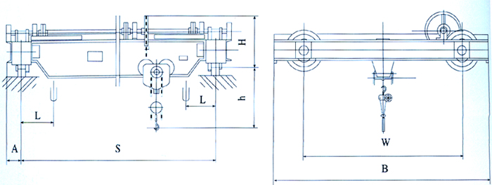 本產(chǎn)品起重量有1、2、3.2、5及10噸五種,跨度有5-14米。